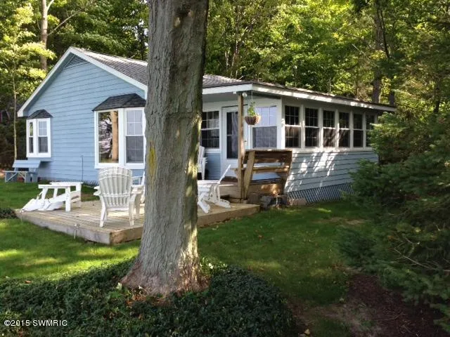 Nestled in the woods this charming cottage is what you dream about. Completely remodeled it boasts 3 bedrooms and sleeping for 10. Upon entering you're greeted with the view of Lake Michigan. A warm well appointed kitchen with all new appliances & solid surface countertops, ample cupboard space will make meal preparation easy. Whitewashed wainscoting lends to the cottage flavor throughout. The 3 bedrooms are spacious & also provide a view of Lake Michigan. Other features include new windows, roof, furnace, central air, bath, flooring & stackable washer/dryer. A spacious 3 season room with knotty pine ceiling, off the living room provides additional living space. A separate screened in porch is off the kitchen.