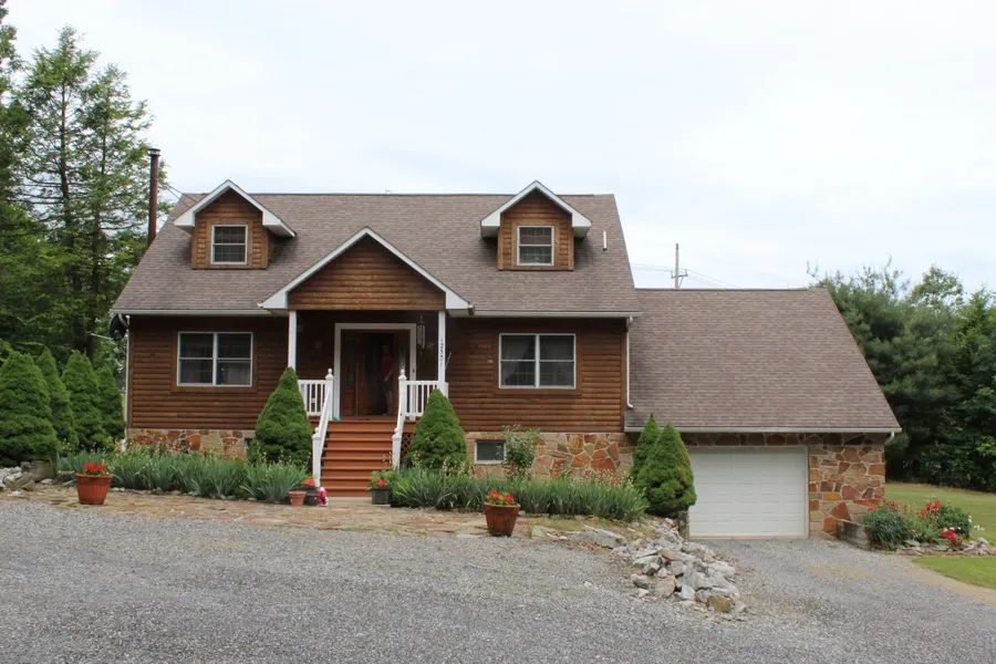 LOCATION = LOCATION - 4 BDRMS - 4 BATHS ( 2FULL AND 2 HALF) CAPE HOME - 3 GARAGES WITH 1 CAR ATTACHED AND 2 CAR OVERSIZED DETACHED GARAGE - SUPER VIEW OVERLOOKING ROCK GAP STATE PARK/RESORT/CASINO/JACK NICKLAUS GOLF COURSE - EXCELLENT LOCATION-ONLY 9 MILES EAST OF CUMBERLAND - JUST OFF I-68 EXIT #50 - 28 ACRES WITH PRIVATE POND WITH GREAT FISHING FOR BASS - BLUE GILL AND OTHERS - APPROX 3400 SQ FT FINISHED SPACE - 2 BDRMS ON THE MAIN LEVEL FEATURING A MBRM WITH FULL BATH AND WALK IN CLOSET - 2 LG 13X23 BDRMS AND A FULL BATH LOCATED ON THE UPPER LEVEL - EAT IN KIT OR EAT AT THE ALLURING DECK WHICH IS RIGHT OFF THE KIT AREA - OR TRY THE COZY FRONT PORCH - SEP FORMAL DIN RM - THE LOWER LEVEL FEATURES A LIV AREA CONTAINING A REC RM - DEN AND HALF BATH - LOTS OF SPACE FOR EVERYONE - VERY PRIVATELY SITUATED - INCLUDES TAX ID #'S 012006181 AND 0121006130 - HOME WARRANTY INCLUDED