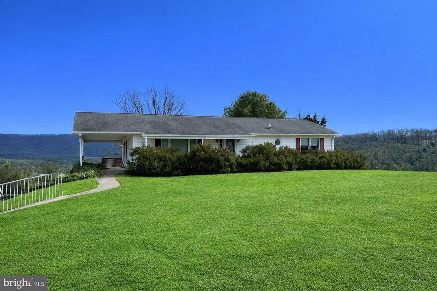 Set on an exceptional 12.18 acres across two parcels, this 1,300-square-foot rancher offers space, privacy, and breathtaking mountain views. The home sits on a 5.18-acre lot, with an additional 7-acre building lot included-perfect for future expansion, an additional home, or simply preserving open land. Inside, you'll find spacious, light-filled rooms and a thoughtful single-level layout. The primary suite features an attached full bath with soaking tub and a huge walk-in closet, while main-level laundry adds everyday convenience. The eat-in kitchen flows into a formal dining room with built-ins, ideal for gatherings, and the large living room with propane fireplace creates a warm, inviting centerpiece. Step outside to enjoy a cozy front porch, a covered patio, and a large rear deck overlooking majestic mountain scenery-perfect for relaxing or entertaining. The lower level includes a basement garage, a dedicated survival shelter, and two large safes that convey with the sale, offering exceptional storage and peace of mind. Additional features include a detached garage, central air conditioning, and a huge unfinished basement with endless potential for added living space, storage, or workshop use. With convenient interstate access yet a peaceful, scenic setting, this property delivers the best of both worlds. A rare opportunity to own acreage, views, and versatility-schedule your private showing today!