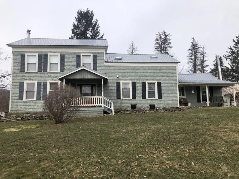The farmhouse has 3 bedrooms with other rooms that could be additional bedrooms, modern kitchen, dining room, living room with fire view coal/wood stove combo, large mud room, and a spacious office area on the first floor. There are full bathrooms on the first floor and second floor. Includes an outside coal furnace. The house overlooks a spring-fed pond.