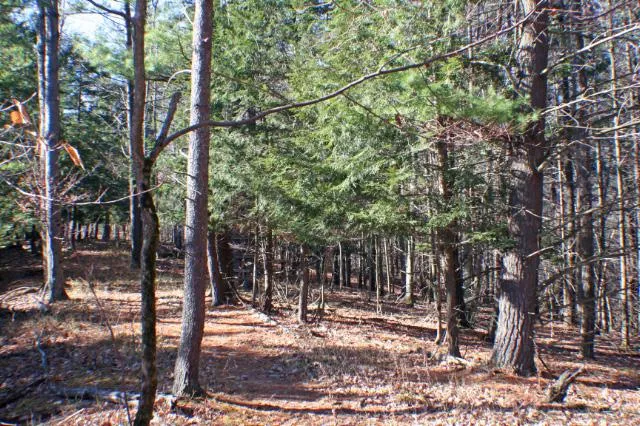 This 5+ acre has a hardwood ridge behind the building site that drops off into a hemlock forest with a stream. This is a fantastic hunting property, but it is rugged. The drop to the creek is steep in most places.