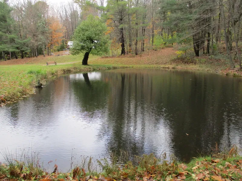New York land with ponds for sale: This 126 acre mostly wooded property is the perfect place to camp, hunt, fish or just get away from it all! With almost 1700' of road frontage on Pleasant Valley Rd and over 1900' of frontage on Richburg Hill Rd it has tons of privacy and is a great place to hunt no matter which way the wind blows. Included is a 38 foot 5th wheel camper/trailer with on site underground electric, propane stove and heater.