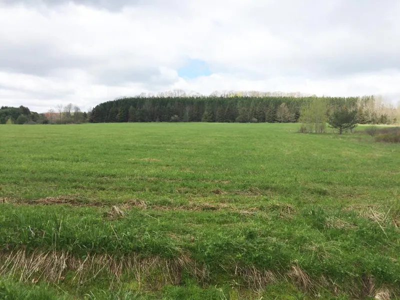 Land consists of large hay field that is currently being farmed.