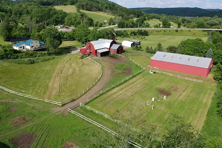 Situated just outside the Village of Andover in southern Allegany County is this well-kept equine facility. Take the paved driveway leading to the home that sits off the road overlooking the farm. The property consists almost entirely of open ground with miles of quality vinyl fencing on pressure treated posts that create several paddocks for rotating livestock and making hay.