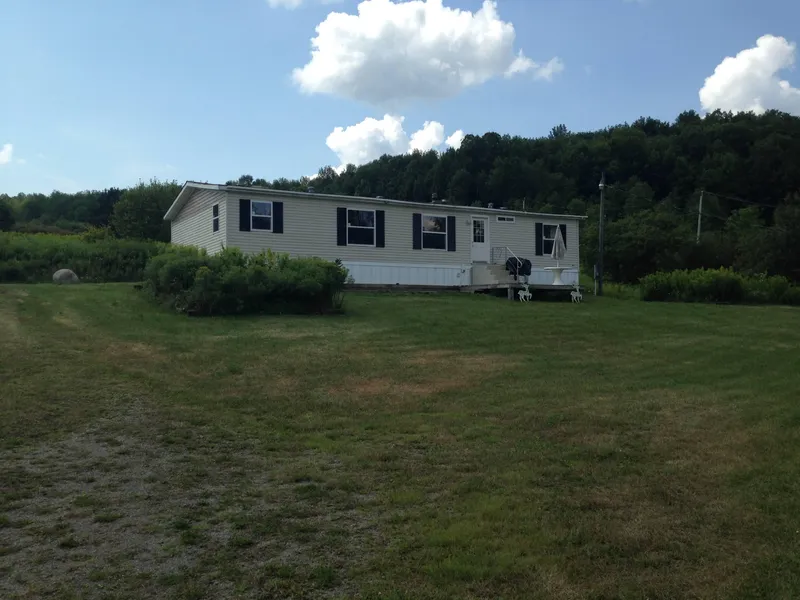 New York land with modular home with snowmobile trail and State land close by for sale: This is a great country retreat on 2.70 acres with access to snowmobile trails. If you enjoy to hunt Coyle Hill State Forest and Vandermark State Forest with thousands of acres to hunt and hike are close by. This modular is tucked up and away from the road with a nice view of the opposite hillside and with apple trees throughout the front yard. Previously this has been a seasonal retreat but with 3 bedrooms, 2 full baths and a very roomy living/dining area it could make a year round home as well. There is electric, septic, propane service available and it is on municipal water. Many options available here from snowmobiling in the winter, relaxing in the summer or hunting the nearby state lands in the spring and fall. Don?t miss out on this one. Seller is ready to make a deal.