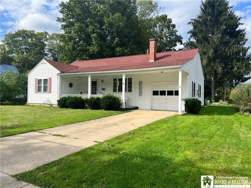 2 BEDROOM, 1 BATH RANCH WITH ATTACHED GARAGE, LARGE FRONT PORCH, FENCED BACKYARD. Lovely ranch with open floorplan. Large living room with fireplace, living/dining combined, updated kitchen with new countertops and backsplash, first floor laundry. 2 bedrooms with double closets, full bath. Deck off the kitchen overlooking large backyard perfect for entertaining. Well cared for, move-in ready. Appliances included in the sale.