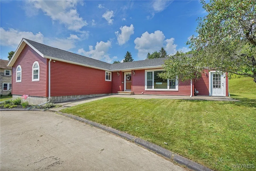 ITS BIGGER THAN IT LOOKS!! Well maintained, clean sprawling ranch with bright spacious rooms. Spacious living room with beautiful hardwood flooring, fresh paint, and the large picture window, brings the outside in and creates natural light. Charming kitchen with original built-in cabinets and prep space, new sink and fixtures and tile flooring. The hardwood flooring continues into the dining room and offers access to the three-season room. The three-season room provides a cozy space for relaxing in an enclosed space or as a great entry/mud room as a place for all your outer wear. Down the hallway to two spacious bedrooms a home office/ media room and the common bathroom. The first words out of your mouth as you enter the primary bedroom will be, WOW! Hugh space with soaring tongue and groove ceilings, walk in closet, and ensuite bath featuring a jetted tub, and walk-in shower. You may never leave your bedroom. Super clean dry basement has a laundry area with folding table. Great area to create that extra space for your lifestyle. No worries about those hot summer days--this home has central air/heat. Relax on the rear patio, get cozy and warm this fall around the fire in the fire pit area. Home has vinyl siding soffit facia and window trim for easy maintenance--no more painting! Plenty of storage for all your outdoor tools and equipment in the large shed. No more taxiing your children to school and after school events, home is a few short steps to Bolivar-Richburg middle/high school.