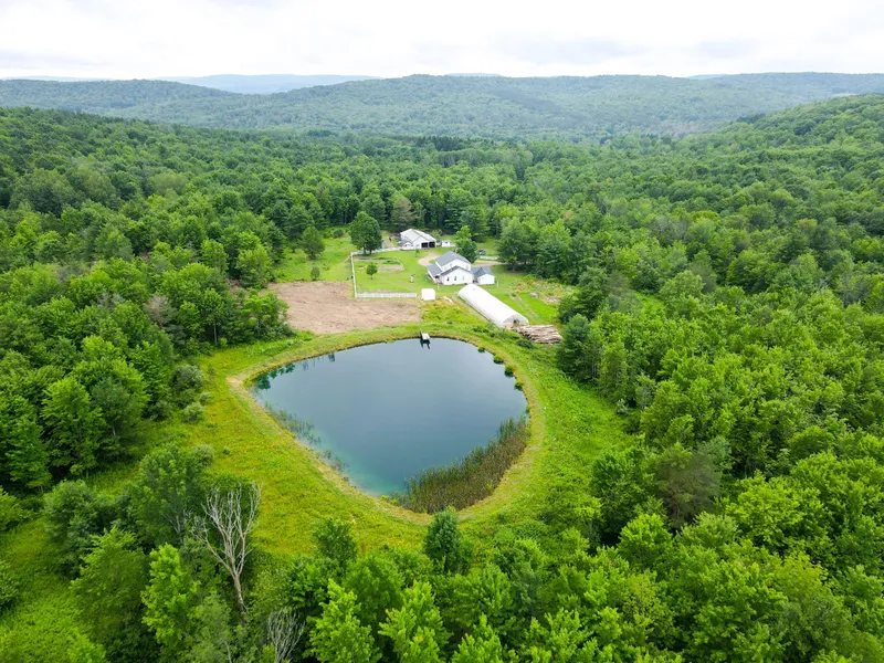 Upon entering a private driveway surrounded by woods you pull into a secluded home, barn, and pond on 20 acres of mostly wooded terrain. This farmhouse has a finished first floor with an unfinished second floor, making it an opportunity for a buyer to make it their own and run electric wiring in an easier fashion. The upstairs could potentially host 3 bedrooms and one bathroom or 4 bedrooms and a storage area. A new metal roof was constructed in 2023. A wrap around porch provides a great place to enjoy dinner with family and friends and enjoy your morning coffee or tea in privacy. The barn can be a great host for cattle, horses, and other livestock if desired. A chicken coop will remain on site along with two separate storage sheds. Walking to the North from the house you will find the well-manicured pond that holds a variety of fish species including Bass, Crappie, and Bluegill, among others. There is enough land to continue to expand and enjoy for your recreational and hunting pleasures. The greenhouse in the photos is not included in the sale; however, can be negotiated as an additional item. There is an existing survey from 2001. Seller is unsure if he owns the Gas, Mineral, and Oil Rights to convey at this time. Surface and Timber Rights Convey. We are researching for further confirmation. RGE Electric and Armstrong High Speed Internet are available at the roadway. There is not a certifiable septic system or septic tank on site. This location is just minutes from Interstate 86 and other main State Routes allowing for good commuting options. If you're looking for a private and secluded home, barn, pond, and acreage this is worth taking a look at. We look forward to scheduling a private showing with you.