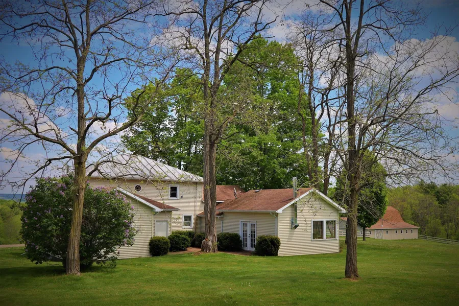 Perched on a hilltop on a dead end and the nearly private road is a home and farm with a commanding view of mountains and valleys far away. Take in the fresh air and breeze from a huge covered front porch and watch over your farm and livestock, relaxing and enjoying the shade of three massive maple trees at your doorstep. The special location you are about to live on is something you will look forward to every day. A renovated lower level with a large great room with picture windows cast views southwest to a newly constructed pond with a dock. A newer equine barn with power is a few steps across the road where eight brand new stalls, each with water, a shower stall and a barn lounge with a bathroom, await a great opportunity to board horses or start a riding business. A hay elevator accompanies this barn and is complemented by a 40x60' hay barn on-site just up the lane. New 4 and 5 wire fencing (2021) was updated in the high pastures where 25 head of cattle call home. Locally this property is known as the “deer farm” as it has produced 150” deer consistently for years, as well as a healthy population of turkey. A large pond is a favorite resting pond for waterfowl on the southeast end of the property. A trail network weaves in and out of the timber with widening acreage for food plots established, merely needing to be seeded again for fall hunting season. The same trails can be used for trail rides for horse riding enthusiasts throughout the property, taking in spectacular views of the Caneadea Valley. Farm charm, hilltop living on private acreage awaits you; check this picturesque property out.