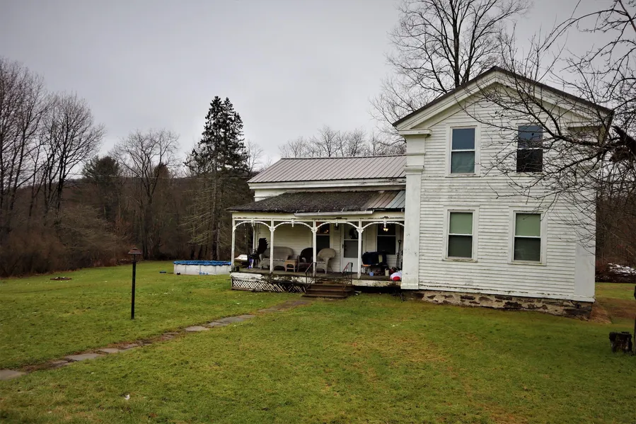 Enjoy quite country living near Bolivar and Portville, NY. Close to SR 417 this property has a great location for commuting to surrounding towns while still retiring to the peace and tranquility of country life. A large home needing some updates is large at almost 1600 sqft, and has the charm of a 1857 built style. A large yard for the kiddos with an 18' x 52" above ground pool, and a 60 x 20 barn with electricity and cement floor is also on sight for the farmer or someone needing extra storage, or needing a shop or garage space, perhaps a business. A chicken coop, shed and a large 1.3 acre yard compliment this charming quiet parcel. Foster Creek flows through the entire length of the property, where it feeds the Little Genesee Creek, a state stocked Brown Trout Creek. The Acreage is a beautiful and gentle slope with a deer population that is in abundance. A three acre field is the entrance to the woods which is a perfect place to add a food plot before the trail head. An ATV trail navigates the property and has a high house for hunting in the center of the timber. Shooting lanes extending over 100 yards radiate in four compass directions from this hunting blind. No doubt a prime spot established by a serious hunter. The Timber is largely Red Pine, Scotch Pine and some White Pine in the southern portions, while Hickory, Maple, some Oak and Beech appear in the northern third and higher elevation of the stand. Sold AS IS, this is a great starter home or for the handy person as a fixer upper to update into a beautiful century home. Many updates have already been added in the past 24 months to include new vinyl windows throughout the home, a hardwood floor in the family room, a new water heater, and new gas furnace, and wood burning heater has been twinned in for a secondary heat source. Check this one out, priced well to sell.