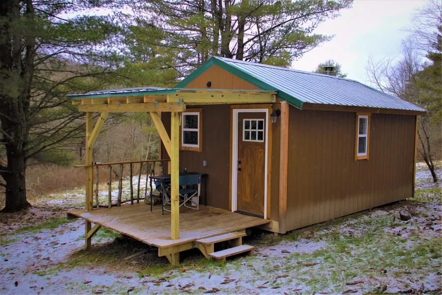 Looking for a get away cabin with hunting and a stream out the front door? This property might be it with easy commuting from the southern tier expressway just south of Cuba. Nestled in Germantown, and surrounded by other large tracts of property, a great deer hunting and retreat property awaits. From County Route 6, a driveway with a gated approach greats you, crossing a stream to your cabin. Some open meadow is complimented with a few large white pines making this the home to a charming one bedroom open design cabin with a wood stove. Newly constructed and with a metal roof and covered porch, this lil’ cabin is the perfect relaxing spot on a summer eve or hunt camp during the wonder of fall color and the rut to warm by the wood stove. A trail network to hunting stand locations is established on the property as well as a shooting range for your bow or gun. An outhouse is proximate to the cabin as well. Check this one out, price well to sell!