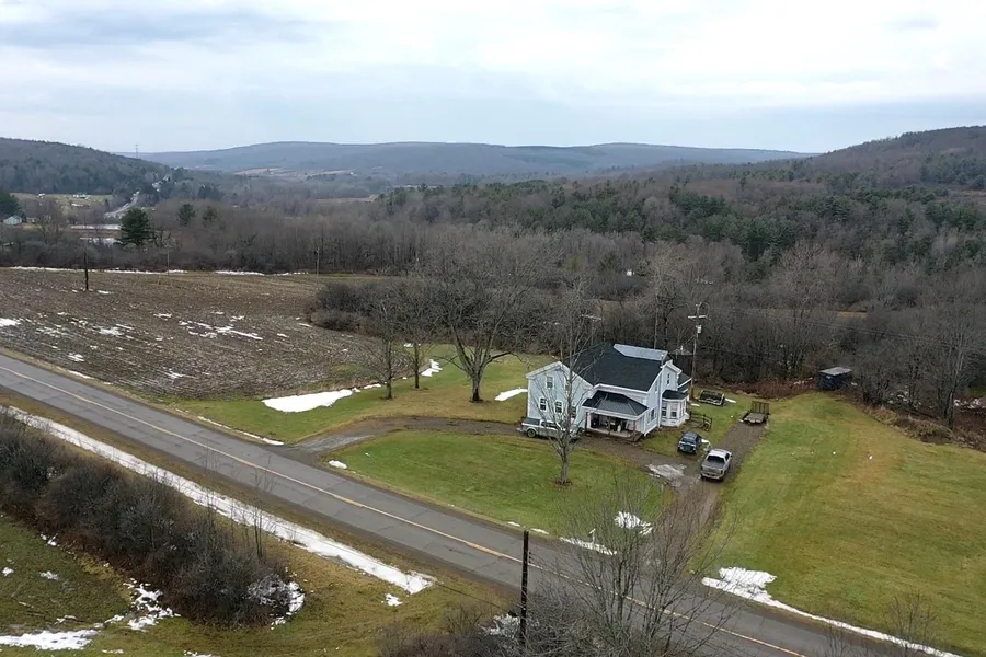 The house has a total of 2,689 sq. ft., and is split with one side finished which includes 3 bedrooms, 1 full bathroom, and a large living room area that leads into a dining room and spacious kitchen. The other side of the house is ready for you to finish to your liking and includes 2 bedrooms, 1 full bathroom, and a living room-kitchen combo. The house can be easily turned back into a single family residence. The property has propane boiler for hot water heating, a newer septic installed in 2018 with a 1,500 gallon tank, and a 200 amp electric service. Fiber optic internet is available.