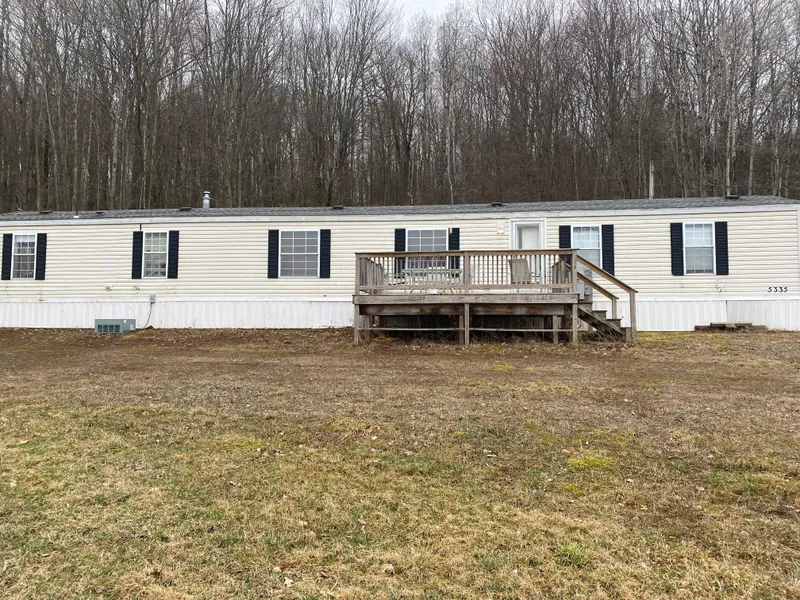 The property consists of a 3 bedroom, 2 full bath manufactured home with a hunting blind on 15.32 acres in Alma NY.