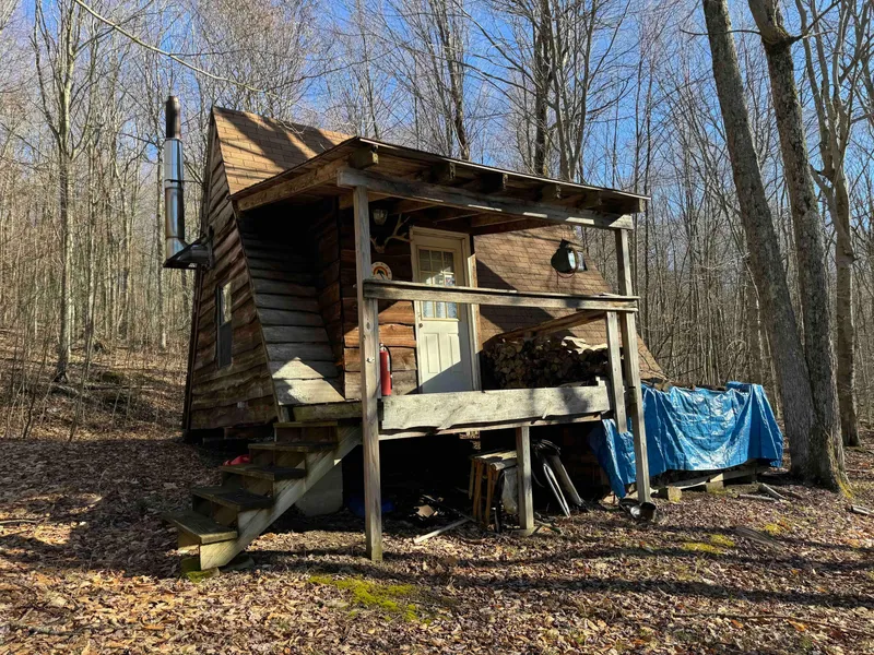 The acreage consists of mostly hardwoods with a few pine trees scattered throughout. The 320 sq. ft. A-frame cabin overlooks the year-round flowing creek. The cabin has a generator hook-up for electric. The outhouse sits next to the cabin for easy access. There are ATV-UTV trails throughout the property to access the entire parcel with ease. Whitetail deer sign throughout for great hunting. The right-of-way is roughly 3 tenths of a mile and is a level gravel road. The access onto the property can be made with any vehicle but the road is not maintained in the winter months. There is no electric located at the property, but a great opportunity to explore solar. There are oil wells on the property but seem to be inactive. This is a great location to bring the family and enjoy the outdoors. The a...
