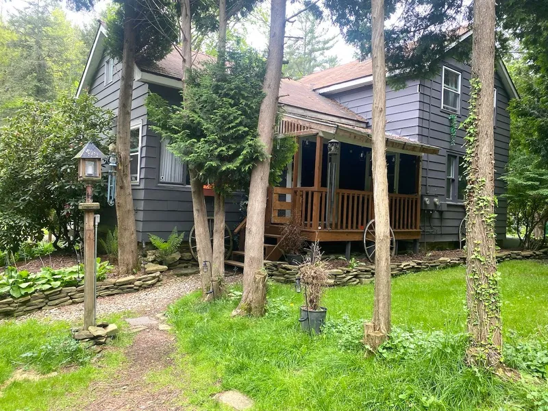 This 3-bedroom country home has a functional layout with a comfortable living space. A covered front porch opens into the kitchen and dining area which connects to a large living room filled with natural light from wide windows. A hallway leads to a full bathroom, and stairs lead to 2 upstairs bedrooms. The attic offers potential for an additional bedroom or playroom. On the main level, a sunroom with vaulted ceilings and a skylight adds extra space. A few steps up from the sunroom is another bright room currently used as a plant and flower room. A spiral staircase connects the main level to a partially finished basement which includes a fireplace and a laid stone wall. The basement opens directly to the backyard. Recent updates include a newer septic system, well pump with updated pressure tank, electric hot water heater, and a high-efficiency furnace.