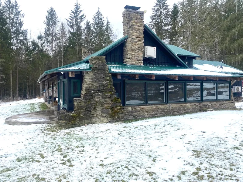 Incredible Secluded Log Home on Stunning Acreage with Ponds, Outbuildings and Valley Views located in Scio NY, Allegany County.