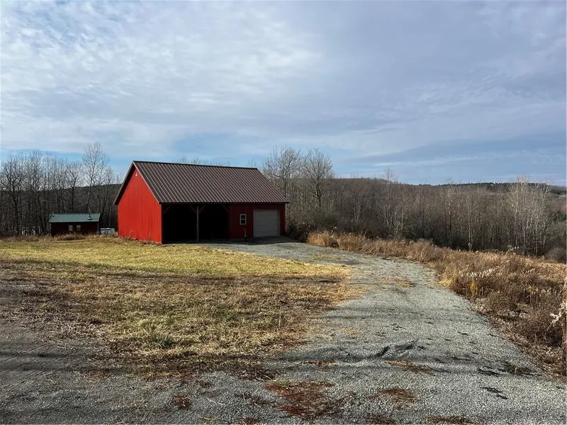 This 7.19 acre building lot is a great place to build your home or cabin in Birdsall, NY. There is a 30’ x 40’ x 10’ pole barn which was built in 2017. A gravel driveway was also added. There is limited warranty on the barn. The county records show 6.7 acres but the survey shows 7.19. The electrical was inspected in 2018. One half of the barn is a shop with a drop down ladder for extra storage above with a large garage door. The other half is an open bay. The pole barn has electricity (200 amp service) and a well (with an expansion tank in the shop). There are plenty of outlets and lighting throughout the pole barn. You will also find a gravel driveway off of County Route 15B to the pole barn. The land is slightly rolling with woods on one side and open on the other. The views are amazing and it is very peaceful. 40% of gas and oil rights are reserved. All mineral and timber rights conve...