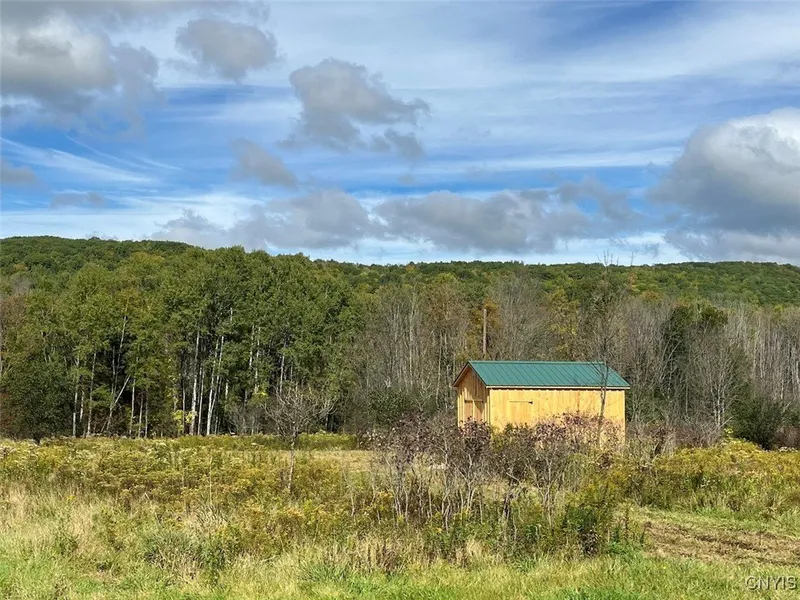 This 3.27 acre property includes an Amish-built building ideal for a campsite or basecamp and is located near state land in Grove NY, Allegany County. This is a great little property that feels much larger. It has plenty of road frontage and features a beautiful open meadow with scattered trees throughout. The land gently slopes toward the wooded back line. Electricity runs through the middle of the property, just below the Amish-built building. The building is 10 x 14 and provides a good place to store gear and take shelter from the weather if needed. With its quality craftsmanship and ample square footage, the shed is well-suited for off-grid living, though electricity is available at the road. Located less than a half-mile to Keeney Swamp Wildlife Management Area which has over 708 acres of public land, and Keeney Swamp State Forest which has another 2,400 acres of public land. There are miles and miles of road and trails throughout. Just a few miles north is Swain Ski Resort to enjoy in the winter, and to the south is the Birdsall Inn. The property is surveyed, and all rights convey.