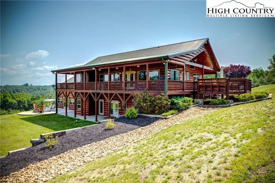 If you have dreamed of moving to the Mountains to enjoy the Cool Breezes and Nature and live in a Fantasy Cabin, this could be your dream come true. Walk into this Well appointed Cabin located on 1.36 ac+/- in Cave Rock Estates. Cave Rock adjoins NC State Lands that are perfect for the outdoorsman who loves to hike and be a part of Nature. Enter this Custom Built Log Cabin thru a spacious Foyer that leads to a open Den & oversized Dining. Den has a gas log Fireplace with Custom Amish Mantle. Enjoy all the outdoor natural light that flows thru all the windows and doors leading to the Covered Back & Side Deck. The Kitchen adjoins the Dining area. This lovely Custom Kitchen has Solid Wood Custom Cabinets, Stainless Steel Appliances with built in Microwave and Wall Oven. The floors are 24 x 24 Travertine Tile with Oynx. Main floor includes a Primary Oversized Bedroom with an Amazing Oversized Bath. Bath features a large Sauna with heated floors, Step in Shower, Oversized Jacuzzi with Window, Two freestanding Custom Sinks, Toilet & Bidet. All Red Oynx Tile. There's a Guest Suite on the main level with/Jacuzzi Tub. Lower level is another complete home. Nice open Kitchen/Den that walks out to the lower Patio. There's 2 Bedrooms/2 Full Bath's. The Game Room has a Wet Bar with 2 Beverage Coolers. The attached Garage is being used as a Sun Room and Office. There's access to the Patio and a side entrance door beside the Garage Main Door. Also a utility Sink for Convenience. Above the Garage is a large Bonus Room that is currently being used as an additional Bedroom/Living Room. Enjoy the Beautiful Landscaping around the Home. There's a Circle Drive as well as Driveway Parking outside the Garage. Views abound here. Look up to Bullhead Mountain just off the BR Parkway! Excellent location! Five minutes to Sparta or the Blue Ridge Parkway. 30 minutes to Stone Mtn State Park, Shopping & multiple Wineries. Take a look today!
