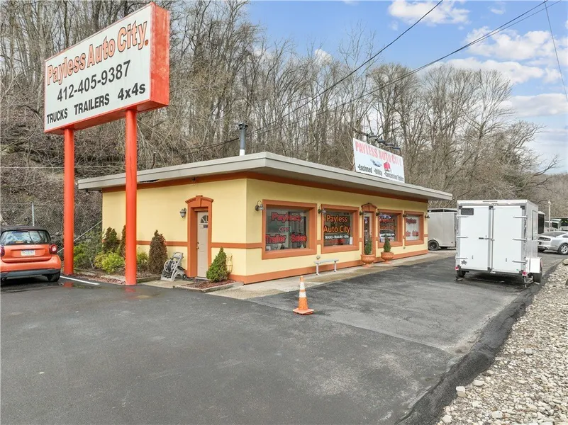 Great opportunity for an owner user or investor to purchase this one-of-a-kind property consisting of 2 parcels. Situated right off busy Rt. 51, this property sees daily high traffic volume with close proximity to Pittsburgh and surrounding markets. The property is currently being used for an auto sales /service-related business with a full office, large windows, bright interior, multiple stations, custom chairs, service storage with adjustable shelving and ADA restrooms. This property also has a fully equipped apartment/living quarters. Both properties present significant potential for a business or rental opportunity to seize additional income. The adjoining lot can serve multiple uses .