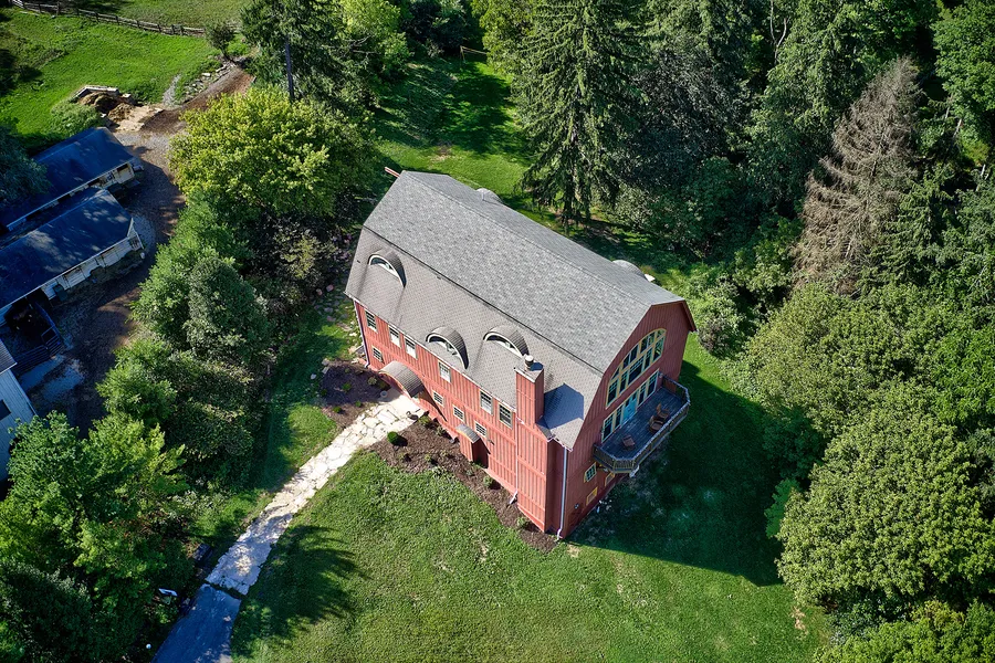 Beautifully unique, this oversized red barn cuts a striking silhouette against the lush woodlands that surround this large lot. Inside, a renovation has been completed with flair and passion to create a home that is modern, light-filled and luxurious.