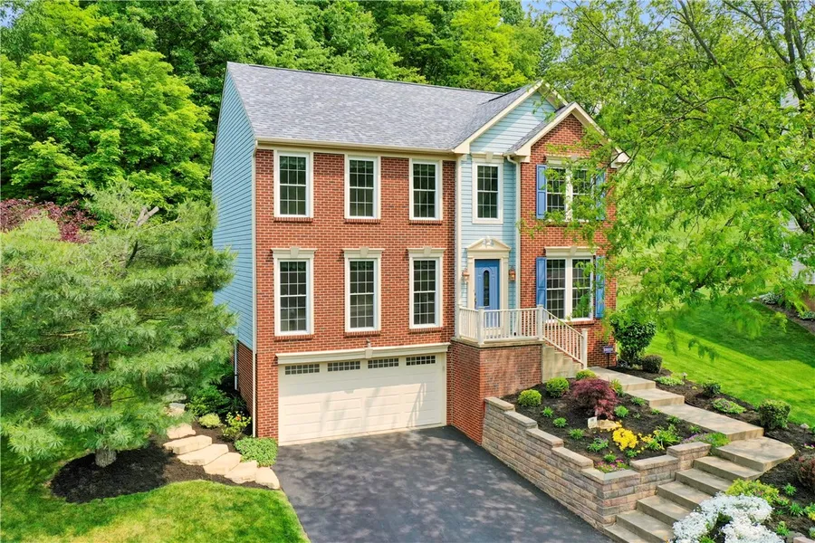 Beautiful home located on a cul-de-sac in the desirable Woodland Ridge community. Over 3 acres on a private wooded lot. Amazing curb appeal w/meticulous landscaping w/solar lighting. Gorgeous updated kitchen w/Quartz countertops, white cabinetry, stainless appliances, custom center island and tile floors. Hardwood floors throughout. Spacious family, living and dining rooms. Large master suite w/vaulted ceiling. Updated master bath w/tiled walk-in shower, jacuzzi tub, double sink granite vanity, tiled floors and a walk-in closet. Three other bedrooms on second level. Updated full bath w/double sink granite vanity, custom tiled shower w/glass door and tiled floors. Laundry closet located on second level. Unfinished basement offers great storage space. 16x12 Trex deck and paver patio. Invisible dog fence included. Great location. Easy access to all major highways. Short drive to downtown Pittsburgh and the airport. A truly great home!