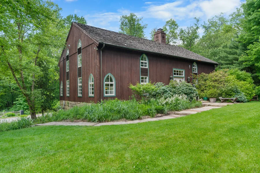 With a serene, peaceful setting on an estate-size secluded lot and a voluminous, completely turnkey interior, this artful custom home is the ultimate legacy property. Located in the heart of Fox Chapel nearby many local parks, restaurants and award-winning schools, this distinctive trophy home feels like a private nature preserve, as it is surrounded by mature specimen trees, shrubs and gardens. Set at the end of a cul-de-sac, this unique, collector-quality residence was built around a 100-year old barn by Todd Rossman, a notable designer/builder with Rossman and Hensley. Blending classic period details with modern amenities, the home features board and batten exterior cladding, copper gutters, antique wide plank wood floors, and Gothic style windows. Renovated with a focus on preserving the original character and style, the home includes a newer gourmet kitchen with stone counters, an upper level reading room/loft with multiple skylights, and a finished lower level, complete with a temperature-controlled wine cellar, a game room and a library with walls of built-in shelving. Soaring volume ceilings with exposed beams create an expansive, open atmosphere in the great room/dining area, which has a towering 30’ fireplace, built from the original barn’s stone foundation. Walls of windows and built-in shelving add to the appeal; a nearby dining room adds functionality. The adjacent designer kitchen showcases the latest technology and style, as it features a large center island with a unique wood slab breakfast bar, furniture-grade custom cabinets with glass insets, and a whimsical backsplash over the Wolf gas range. Open to a spacious family room and dining area, the kitchen also includes a built-in desk/workstation, dual Wolf ovens, a warming drawer, two sinks and a built-in refrigerator. Numerous oversized windows bring light inside; French doors open to a private deck, perfect for al fresco dining or bird watching. Dual staircases provide convenient access to the generous secondary bedrooms as well as the master suite, which has vaulted ceilings, a private balcony overlooking the serene, park-like grounds, a dressing room and a spa-like bathroom. Along with the master suite, many of the other bathrooms have walk-in showers and soaking tubs, ensuring there is something for everyone. Set into a hillside on a sandstone foundation, the home also includes wrought iron hardware, plank doors, punched tin light fixtures, new lighting and security systems, a fenced-in area for dogs, extensive stonework, and four newer ductless AC units for the bedrooms. Landscape architect Joel LeGall and horticulturalists John Totten and Linda Kramer assisted the current owners with the exterior plan, resulting in an inviting oasis that qualifies as a native backyard habitat under the Audubon Society. Features include a fenced garden area with raised beds, an entertaining pavilion with a fire pit, mature magnolias and maples, fruit trees such as pawpaw, pear and apple, serene meditative pathways and a grove of river birch trees. Tastefully updated and refined over the years, this inviting architectural home is the opportunity of a lifetime.