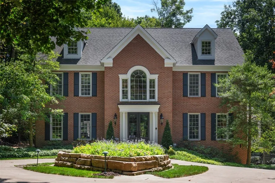 Step into a world of effortless elegance in this sun-filled entertainer's Georgian Dream. The heart of the home is a gourmet KIT where natural light dances across countertops, a center island, Sub Zero Fridge, stainless appliances, walk in pantry and 1st floor laundry. Wide sightlines extend from here into soaring 2 sty FR framed by exposed beams, stone FP and wall of windows w/wooded views. On the main floor, a private office offers his & her flexible space for remote working. Formal LR transitions into a bright sunroom w/palladian windows. Ascend to the second level and discover 4 generously sized BR w/bath access & closets. The primary suite is an oasis of calm, boasting 2 closets, SPA bath w/dual vanities, freestanding soaking tub and oversized tile shower. Enjoy the finished walk out LL gameroom w/Wet Bar, storage and full bath. Outside, the entertainer's palate continues w/sto...