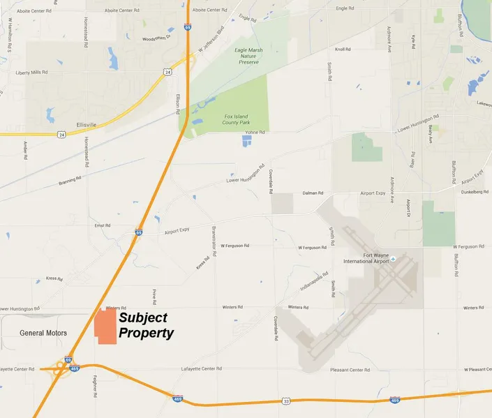 General Location: I69 Frontage. NE intersection of I69 & I469. 2137 feet (.4 of a mile) of frontage on the Feighner Road and 705 feet (.13 miles) on the Winters Road