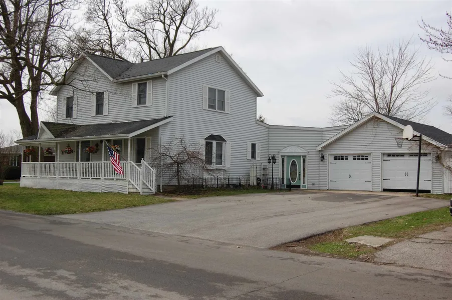 Enjoy small town living in this 2334 sq. ft. updated 4 bed, 2 full bath Farm House. Original Stain Glass In Living room. Most updates have been completed in the last 3-5 years. Kitchen appliances, New roof with 30 years dimensional shingles, whole house has new flooring, Fully Remolded master bath and main bath. all new Interior doors, New Gas Furnace and AC only 3 years old. Electric Also has Been Updated. And A wonderful front wrap around porch was added 5 yrs ago. Family room boast the gas fireplace, French doors leading to the back entertainment area, and yard (new grass being planted), also has a built in bar area with sink. You will love the massive over sized garages, with an additional garage located behind the main garages and opens into the yard. Main garage has pull down stairs with floored storage. Large back yard completely private with white Vinyl fencing, stone/deck patio....