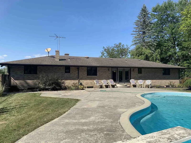 PENDING - Showing For Back-Up Offers Only - Just listed.Convenient country location. 1.5 acres. No rules! ALL brick one-owner ranch on Full Finished daylight basement with Wet Bar and Fireplace. 26 x 9 foot Covered Front Porch. Living Room has full masonry Fireplace also. Hardwood floors. Beautiful concrete below ground pool. Wrought iron fenced pool area. Barn with loft plus a storage shed too. 2 Fireplaces. 2.5 baths. 3 bedrooms, plus den/office, laundry room, walk-in pantry. Roof 13 years old, central air new in 2020. This home was built by a concrete/brick mason as his family home. Pride in workmanship shows. Buyer to Accept 2018 survey. 1 Year Cinch/HMS Home Warranty included. NOTE: Only 1.5 Acre front parcel is offered for sale. Wooded area behind pool area is NOT included in sale.