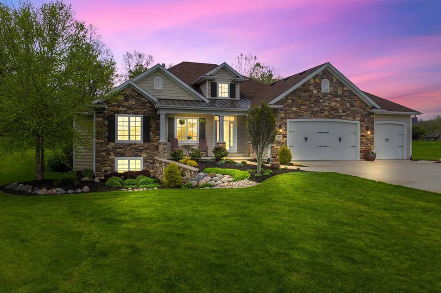 BETTER THAN NEW!!! STUNNING barely lived in Ranch on a finished basement on over 1.2 ACRE lot that backs to a private wooded area!! 4BR/3BA, custom built home located in LEO SCHOOL DISTRICT. This over 4000 sq.ft, IMPECCABLY maintained home boasts a HUGE open concept kitchen and dining room with a large island, quartz countertops, stainless steel appliances, double oven, gas/stone fireplace in the great room and electric in the basement, HUGE windows with a ton of natural light. Office/Den on the main floor can easily be converted to a 4th bedroom which includes a large walk in closet or can continue to be used as a home office. Bathrooms all have granite countertops and beautiful tiled showers. The basement is a great additional entertaining space with built in wet bar, full bathroom and a large bonus room that could easily be used as an additional bedroom, office, work out room etc. The...