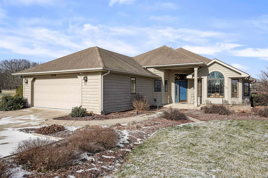 Here is your chance to own your own estate on almost 6 acres, with a pond and in ground pool. Nature is right outside the doors of this 3 BR 2 1/2 BA ranch home on a walk out basement. The foyer has a skylight, is bright and opens to kitchen and great room. The living space is spacious with a ventless gas fireplace, newer oak wood flooring and large windows to enjoy the views. Walk into the kitchen that has an island with a gas cook top, lots of cabinets, tiled backsplash and an eat in area with bay windows. Your primary suite boast french doors to the outside deck, a tiled shower, double sinks and heated floors. The lower level has a bar area and plenty of space to entertain with surround sound, built in desk and shelves for storage. The attached and detached garages are heated with gas wall units. There is a pull down ladder for easy attic access for storage in attached garage and the ...