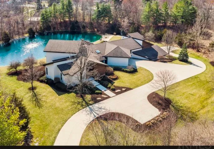 Open House Sunday 1pm-4pm-Online & Public Auction w/ reserve June 9th at 6:00pm. This home sits on 4.76 acres w/ a stocked pond & mature trees. This home boasts a 20 car lower garage (5439 sqft.). This 5439 sqft, can be used for multiple home businesses. There are separate HVAC, its own office & laundry in this area. All brick exterior has just been completely redesigned w/ many custom features! Home's unique architecture leads you room by room, great room w/ expansive windows w/ beautiful view, fireplace that extends from ceiling to wood floors, dining room, cozy solarium & sunroom. Completely remodeled kitchen w/ all new appliances, natural Quartzite Island, Dutch made cabinets, custom hood & custom epoxy river-table. Office is complete w/ a murphy-bed & hall bath has a marble floating vanity & mother of pearl tile tub surround. Laundry room has quartz countertops, room for a washer, d...