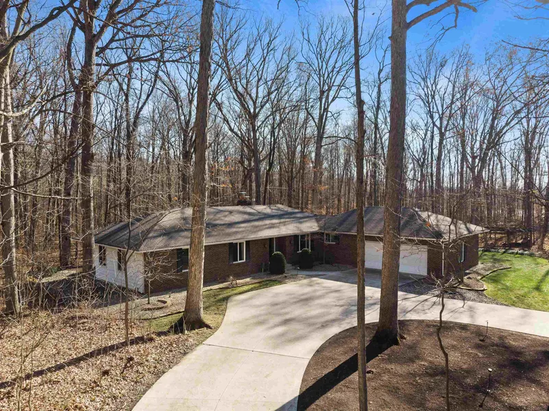 Picturesque setting w/ concrete circle drive. One owner custom built home-1975. Spacious ranch on finished bsmt. Oversized 2 car garage (24x26). Heavily wooded 5 acre lot. LR,FR,DR eat-in kitchen. 2 wood burning fireplaces. Windows replaced by Busche. Corian kitchen countertops, six panel doors, irrigation system, security system, R/O drinking water system, new water heater, electric heat pump for heating & cooling, 4 well. 12X21 Solarium. EAC Schools. The estate is selling the home AS IS but has had excellent care since day one. Basement includes finished areas 21X12 plus 13X12 rec room with fireplace.