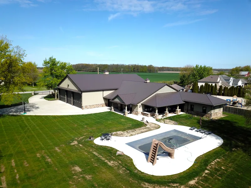 The ultra-cool, luxury “barndominium” of your dreams is now available to purchase right here on the border of Allen and Whitley counties in the award-winning city of Fort Wayne, Indiana, and its SW Allen County School district. Enter the property’s concrete circle drive by attractive gated entrances on both Covington and County Line Rds. Newly constructed over the past three years, the 3 bed/2 bath custom everything, modern farmhouse home has its own 2-car garage, in-ground 18’x 38’ concrete pool, sundeck, and outdoor kitchen under a covered porch. Open the west-facing side door into your attached 3 oversized bay shop (~10,000 sf) which can easily hold 17-20+ vehicles depending on the size of course. The shop has its own charming, wrap-around front porch on the exterior and too many interior amenities to name in this summary. (3) overhead shop entry doors are 14’ High with openers: * 20’ x 14’H / * 14’ x 14’H/ * 20’ x 14’H. This listing has over 13,000 sf of total living/garage/outbuilding space! A full list of the numerous top-quality amenities of the home and shop such as heated floors throughout, will be available at showings and attached to the listing in the MLS.