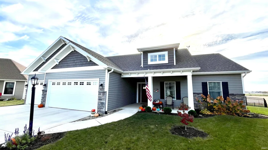 Discover this beautiful craftsman-style home, perfectly situated on a peaceful cul-de-sac lot with expansive views of a nearby horse farm. Built just five years ago, this home combines modern conveniences with cozy charm and is loaded with desirable features, starting with 3 bedrooms and 2 full bathrooms, an open floor plan which features a fireplace, ideal for gathering with family and friends, and 1/2 spray foam insulated exterior walls to keep drafts out! The kitchen has custom hickory cabinets with special features that include soft close drawers, a built in spice rack, tray organizer, and pull out trash can in the island. Take the entertainment to the backyard where you can enjoy relaxing on the covered veranda while taking in the scenic horse farm views and grilling the burgers on the covered patio. This backyard living area includes a beautiful wrought iron-fence that provides peace of mind for kiddos or dogs playing outdoors. The attached 3-car garage offers ample parking and storage space.