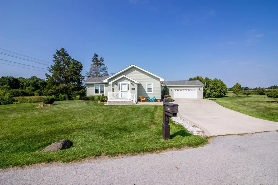 WATERFRONT COUNTRY ESTATE in desirable Rural Northwest Allen County! * 2085SF 3BR 2BA 4.41Acres. This home is a MUST SEE. This home features a Spacious Living room, separate Dining room or office space and an eat in kitchen with a large Island. The kitchen highlights custom cabinets and granite countertops. The Master Bedroom features an En Suite Bath, a Walk in Closet and it opens up to a beautiful deck overlooking the Pond/Beach. Fully stocked Pond with catfish, turtles and blue gill. Newer Roof, Kinetico Salt system and Well. Oversized 2 Car Garage with Shop & Attic Storage! *Outbuilding with Garage, Shop & Storage * Lots of Land with Pond, Rolling Pastures & Beautiful Views! *