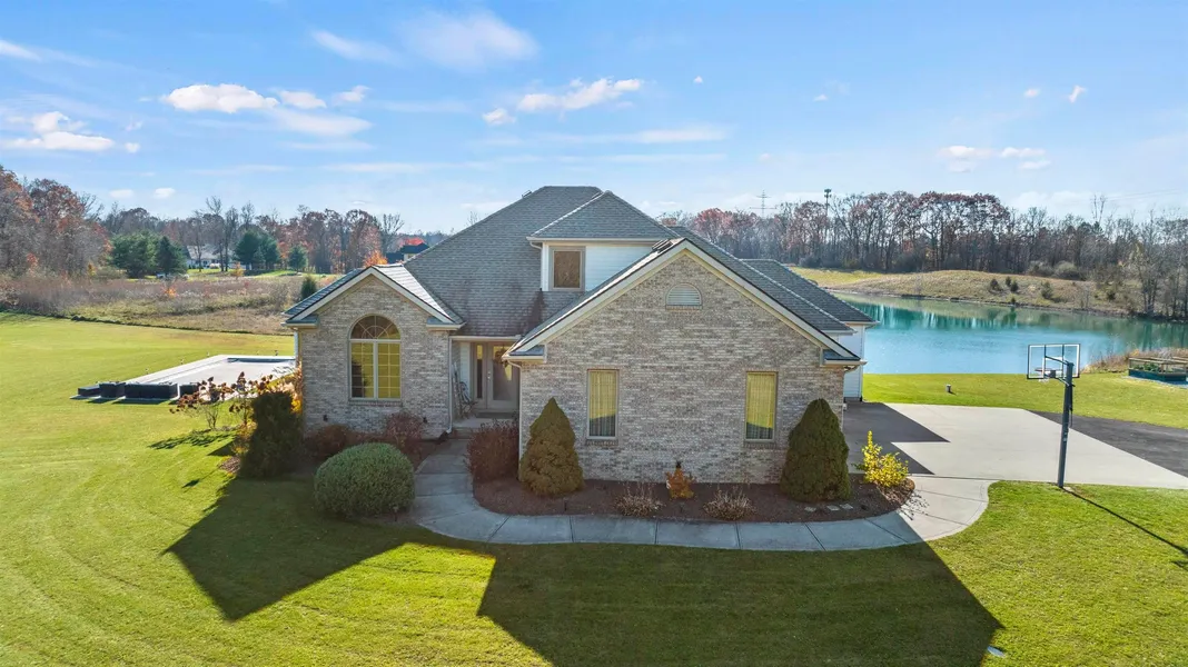 NESTLED ON 3 ROLLING ACRES, THIS SPACIOUS 4-BEDROOM, 3.5 BATH RESIDENCE IS THOUGHTFULLY DESIGNED FOR COMFORTABLE LIVING. Step into a welcoming 2-story foyer featuring a charming front door. It's more than an entrance?it's the beginning of your cozy and stylish home, where every arrival feels special. The great room welcomes you with soaring cathedral ceilings, a cozy gas fireplace, and custom built-ins?creating the perfect space for gatherings with a captivating view of the pond. The open kitchen is a chef's delight, showcasing granite counters, a stylish tile backsplash, a large, angled breakfast bar, and nice pantry. The refrigerator, microwave, and dishwasher were new in 2022 enhancing the functionality of the kitchen. The nook area features a bay window with great views of the pool area and property. The dining room includes a cathedral ceiling and French glass doors, provides an enchanting setting for formal meals. The main floor owner?s suite is a personal retreat, featuring crown molding, a step ceiling, and a walk-in closet. Wake up to breathtaking pond views and pamper yourself in the En suite, complete with a double vanity, a glass block and tiled shower, and quartz countertops. Three additional generously sized bedrooms, each with nice closets, provide ample space for family or guests. The walkout basement is an entertainer's paradise, offering an additional Kitchen area, a large Family Room area and a spacious entertainment space with a bar. Huge storage room great for storing your possessions. The three-car garage features pull-down attic with workbench, and cabinets provides ample storage and workspace. Second story walk out attic. Enjoy the outdoors on the rolling grounds, relax and enjoy the heated pool installed in 2018, and make use of the additional features, including a spacious deck, a geothermal system, outbuilding, shed, security system, surround sound, and a basketball hoop. Updated features include: paved driveway in 2023, overhead garage door and service door in 2022, roof shingled in 2019. See additional updated features list. This property is designed for your comfort and enjoyment, offering not only spacious living but also a stunning view of the pond. SCHEDULE YOUR TOUR TODAY AND MAKE THIS DREAM HOME YOURS!
