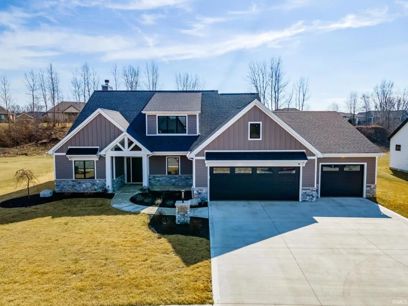 Located in the sought-after Northwest Allen County School District within the new subdivision of The Quarry, this stunning Wannamacher Builder is a one and a half story home that boasts luxurious features perfect for modern living. The 4 bedroom and 3 full bathroom home offers comfort and convenience. The main level en suite is connected to the laundry room through a walk-in closet that adds a unique touch of functionality. Feel comforted with the privacy from your transom windows while also allowing natural light flow throughout your space. Your private oasis bathroom holds a walk-in shower and double vanity sink. Venturing back into the main living area, you will enjoy an open concept living area which is a fantastic choice for those who love to entertain; it creates a seamless flow that allows guests to mingle and socialize freely. The abundance of natural lighting in the living room ...
