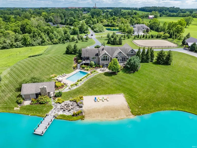 *Stunning Equestrian Estate on 21 Private Acres* This one-of-a-kind spectacular estate, meticulously crafted by renowned builder Stu Berk and featured in Fort Wayne Magazine, is nestled on 21+ completely private acres and offers the ultimate retreat for nature lovers and discerning buyers seeking unmatched amenities and design. From the moment you arrive, the estate's grandeur is evident—rolling pastures, wooded trails, a pristine private pond w/ sandy beach & pier, heated pool & pool house, & a swanky horse barn that sets a new standard. The heart of the property is a walk-out 4 BR, 5 BA, 6,954 sq/ft ranch-style home infused with natural light & boasting panoramic views. Interior features include wide plank hardwoods, slate floors, exposed repurposed beams, natural stone accents, open-concept floor plan, soaring ceilings, & luxe finishes. The eat-in kitchen is a chef’s dream, complete w...