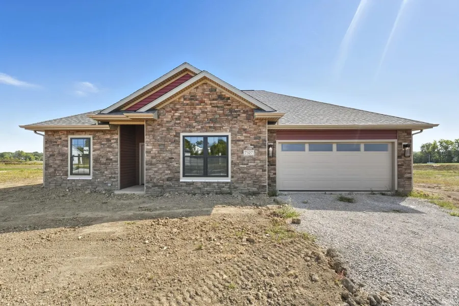 "For a limited time, lock in a 5% rate with 3% down and NO PMI, or choose $0 down at 5.25% with NO PMI. Incredible savings on a brand-new construction home!" *Restriction do apply Looking for a ranch near the countryside of Southeast Fort Wayne? Welcome home! This thoughtfully designed property offers 3 spacious bedrooms and 2 full bathrooms across 1,575 square feet, starting with a welcoming foyer entry. The stone and red vinyl exterior bring unique character and add to the curb appeal along Starks Blvd. With its intentional elevation, the home’s façade has both height and depth, giving this ranch an impressive presence. Inside, the living area features a custom accent wall that flows seamlessly into the kitchen and eat-in dining space. Closet Concepts systems are installed throughout for organized storage. The home comes fully stocked with appliances, and the bathrooms showcase luxury tiled showers. Move-in ready and designed with both style and comfort in mind, this home is ready for its new owner.