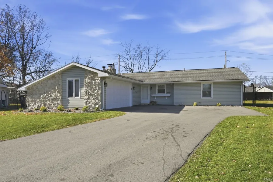 Welcome to this beautifully updated 3-bedroom, 1.5-bathroom ranch offering a bright, open-concept interior and an impressive outdoor living space in a convenient Fort Wayne location. Inside, you’ll find a spacious living and dining area with warm natural light, modern lighting, and a painted stone fireplace that adds a cozy focal point to the layout. The stylish kitchen features clean white cabinetry, sleek countertops, stainless steel appliances, a large center island with seating, and great sightlines to the main living areas for easy entertaining. A sunny flex room off the dining area provides an inviting spot to relax and enjoy backyard views. All three bedrooms are comfortably sized, and the bathrooms are clean and well-maintained. Outside, the fully fenced backyard is a standout—featuring a large patio, a separate circular concrete fire pit area with fresh landscaping, ample green space for play or pets, and a storage shed. This move-in-ready home blends comfort, modern style, and indoor-outdoor living, offering a truly enjoyable place to call home. Schedule your showing today!
