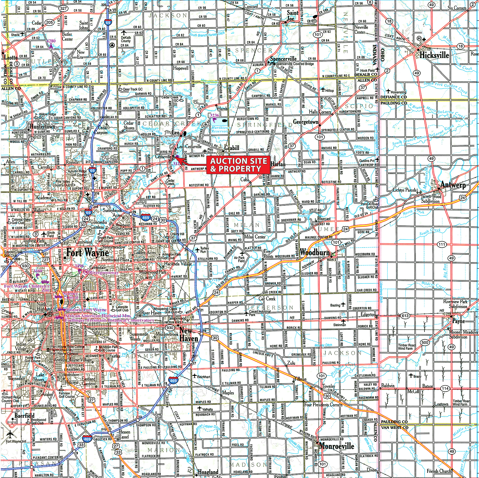 Tract 2: 1.6± ac Potential Building Site(s)!! This tract off ers over 300 feet of road frontage along Cherry Street and runs back approximately 175 feet in depth. Great investment property in the town of Leo- Cedarville! Combine with the Tract 1 home for a spacious nearly 5 acres setting!!