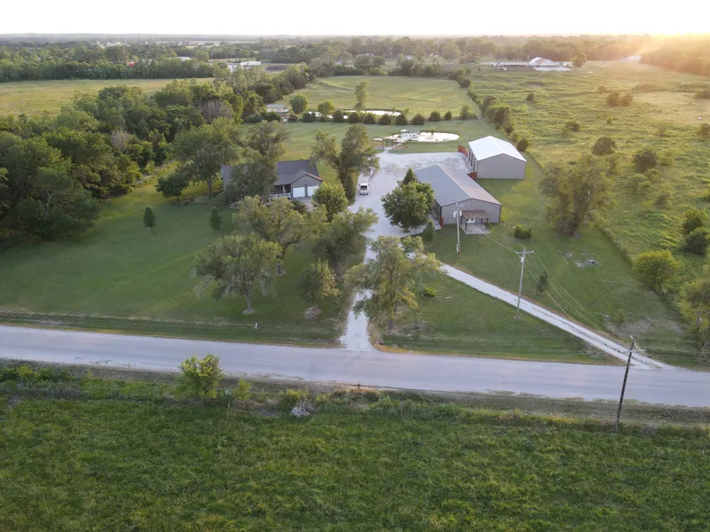 It’s hard to find a house on a small acreage just outside of town. This 4 bedroom, 2 bath home spanning almost 2,000 square feet and sitting off blacktop has many value features built in. The layout of the house makes it perfect for any size of family. The downstairs has an open-concept feel that connects the living room, dining room, and kitchen. There are 3 bedrooms downstairs along with an oversized 2 car garage and safe room. With a big front porch and a massive back deck, the house sets up well to enjoy sunrises or sunsets while sipping on a coffee or cold beverage in the quiet of the country. The backyard is set up to entertain a wide range of guests. The pond has a covered deck out over the water creating a unique and relaxing atmosphere. If that wasn’t enough, there is a water feature that makes water cascade off the back of the roof of the deck creating a mini waterfall. This space is perfect for relaxing with the family or hosting small weddings for extra income. There is ample seating with 3 pergolas near the ramp of the covered deck. In addition, there are two large metal buildings set up and ready to use for extra income from a venue standpoint. If the weather is a concern for a scheduled outdoor wedding, the 40 X 80-foot metal barn has a gravel floor with a ton of seating and has been set up and used for a backup wedding ceremony area that’ll keep you out of the elements. The 40 X 100-foot building is a fully finished event center/reception venue that includes several bars, a bathroom, a pool table, a projector, and a sound system that is very tastefully done. There is a very real opportunity for extra income from renting out the event space or throwing great holiday parties for personal entertainment. This income-producing property is truly unique! Contact Clayton Campbell for more details and or a private tour. Please allow 48-hour notice for scheduling a showing (620) 808-3085.