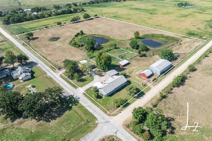 Stepping out west of the house and garage you will be greeted by the spacious 8.7 acres containing two pon...