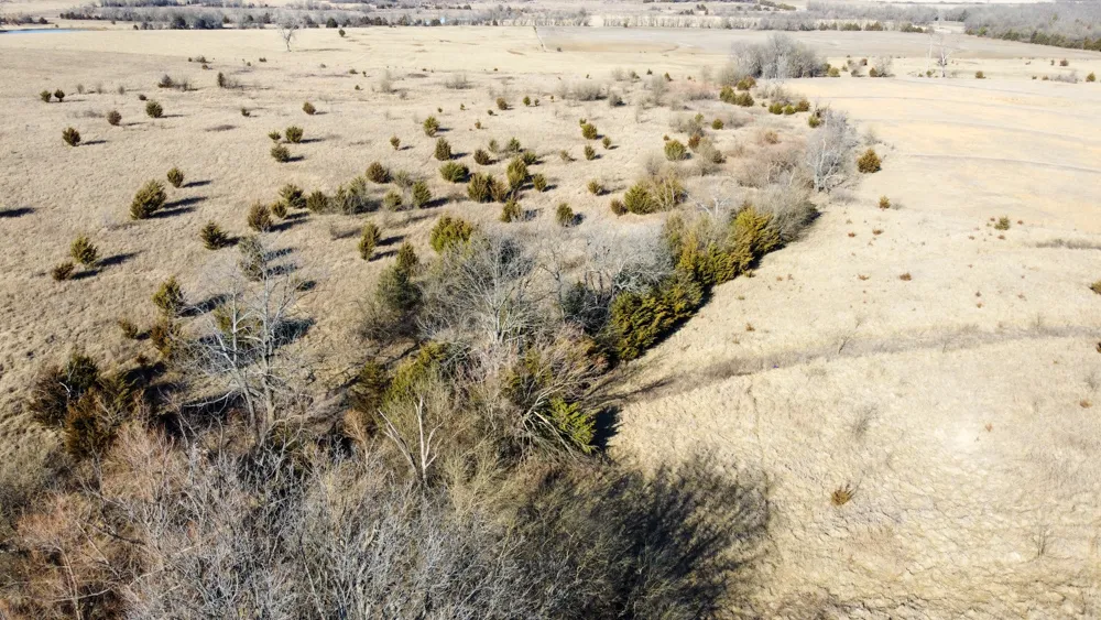 If you are looking for an affordable blank canvas that you can turn into a hunting haven, then look no further! This 50 +/- acres lies in a big buck-proven neighborhood and already boasts a great pond and a draw full of warm season grasses and cedars providing both bedding cover and a travel corridor. You can see deer trails littered throughout in the drone photos. There are 20 +/- acres on the east side of the property bordering the county road that have been cut for hay, but as you can see on the aerial the terraces tell you it was once row crop. The soils are good, and you can turn those acres into food whether you put them back into production or just plant a 20 +/- acre food plot!