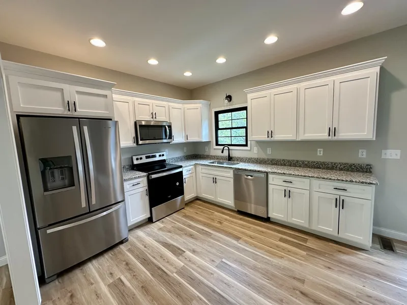 Welcome home to your new country living retreat. Nestled on a peaceful 0.79-acre lot, this stunning new construction home offers 3 spacious bedrooms, 2 full bathrooms with granite counter tops, and over 1,200 sqft of modern living space. The charming exterior is beautiful blue siding, a covered front porch, and don't miss those large black trim custom windows. Step inside for an open floor plan, granite counter tops, stainless steel appliances, new modern fixtures and details throughout the home including a walk-in closet. The uncovered back deck overlooks picturesque farmland, providing the ideal setting for morning coffee or evening gatherings. With everything brand-new and thoughtfully designed, this home offers the perfect combination of country living and modern touch.