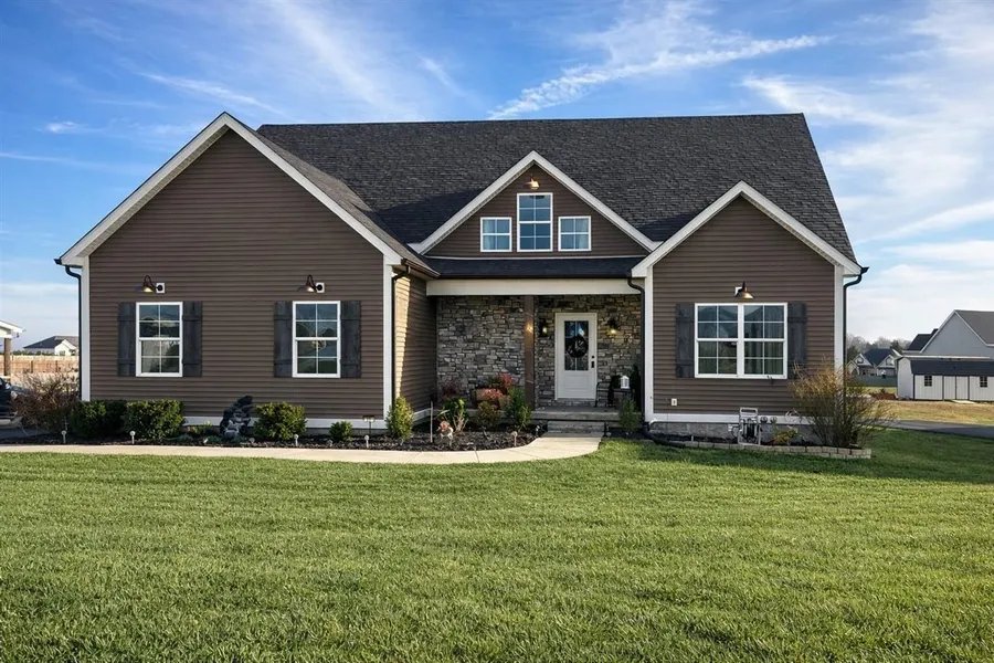 3010 sf home with 5 bedrooms & 3 baths on 0.7 acres. Located only 9 miles from Scottsville & 14 miles from Bowling Green. Upper level has just been completed - all new! Large living area, 2 bedrooms, 1 full bathroom and several storage rooms with flooring and lights on upper level. Covered back porch, ventless gas fireplace, stainless kitchen appliances included. Pretty white kitchen cabinets with granite countertop & subway tile backsplash. Tiled showers and a tub shower combo. 2 car attached garage. Black topped drive. Landscaping. New gutters and recent grading with re-seeding.