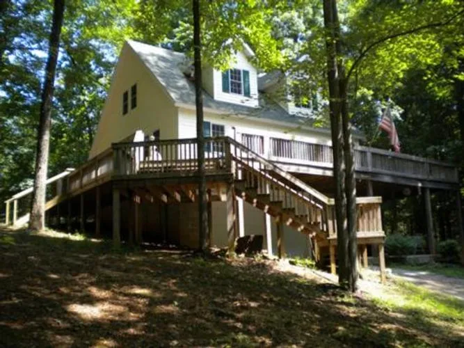 2 story Cape Cod with walk-out basement, 1 car garage in basement, 2 car detached garage with overhead storage above. Great hardwood throughout. Wrap around deck. Backs up to new boat ramp and park area. Yacht Club for sailing and boat launching are at the end of the road. (membership required). Only 1/4 - 1/2 mile from Barren River Dam. Only 6 yrs old. If you prefer you can make a drive to the back of the home for easier entry.